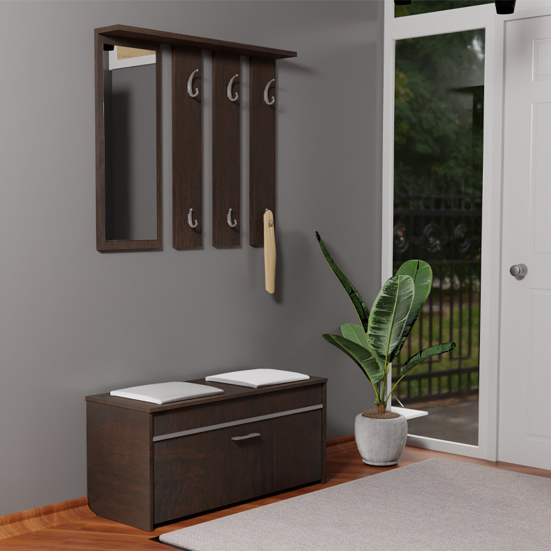 Az előszobafal minden lakás nélkülözhetetlen eleme. A kabátoknak és a cipőknek megfelelő és elegendő helyet biztosít. Gondos kidolgozása miatt tökéletes kiegészítő eleme lehet az előszobának. A bútorok felületét puha ruhával kell megtisztítani. Kerüld az erős vegyszerek használatát!